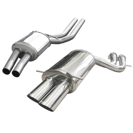 InoXcar, 100% Edelstahl Mitteldämpfer + Sportauspuff passend für Audi RS4 B5 2.7 BiTurbo 1998-2001 2x80mm Racing, Inox