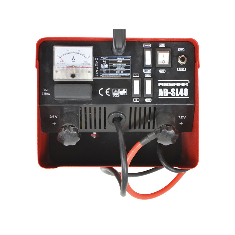 Absaar, AB-SL40 Professionelles Batterie-ladegerät 12V/24V 40A - Starthilfefunktion 250A, Stahl, Rot