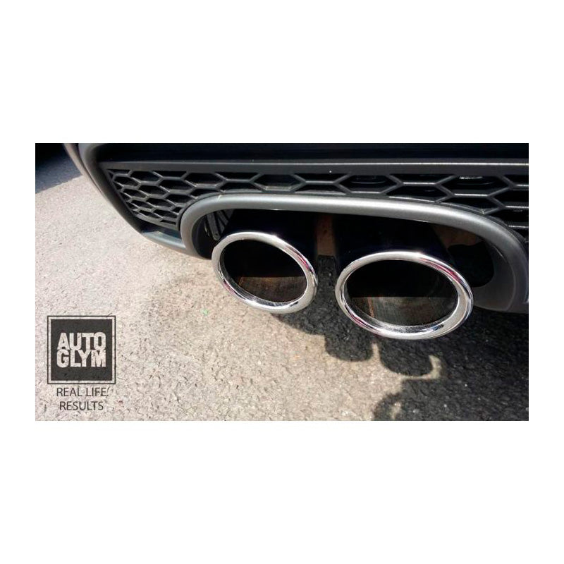 Bitte beachten Sie, dass die Politur nicht auf modernen verchromten Kunststoffen, lackierten Aluminiumrädern, verzinkten Blechen oder neuen verspiegelten Teilen angewendet werden sollte. Für diese Anwendungen empfehlen wir die Autoglym Super Resin Polish.