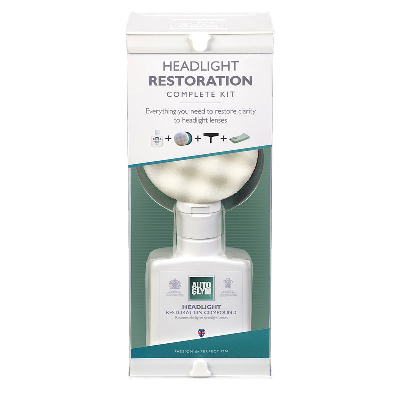 Der Autoglym Scheinwerfer-Wiederherstellung Komplettsatz ist die ideale Lösung, um trübe und matte Scheinwerfer wieder in ihren ursprünglichen Glanz zu versetzen. Mit diesem umfassenden Kit können Sie die Sichtbarkeit und Sicherheit Ihres Fahrzeugs verbessern.