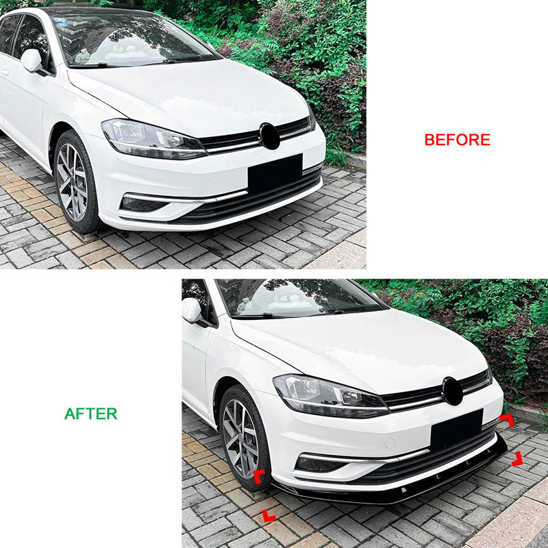 Front spoiler lip suitable for Volkswagen Golf VII (7.5) 2017-2019 excl. GTi/GTD/R/R-Line (Glossy Black ABS)