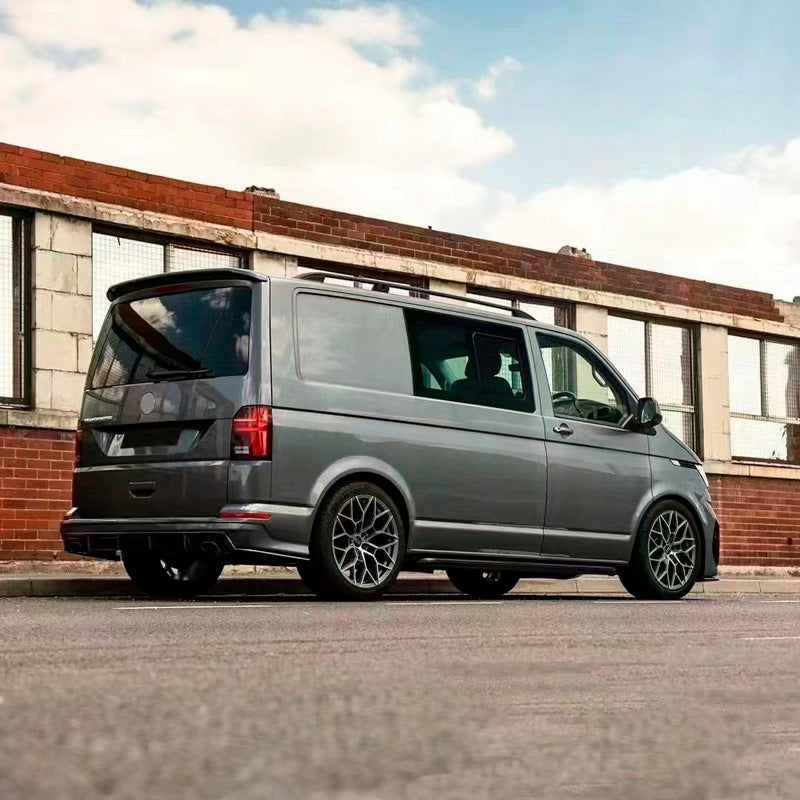 Der Komplettbausatz für den Volkswagen Transporter T6.1 (2020-2022) bietet Ihnen die Möglichkeit, das Erscheinungsbild Ihres Fahrzeugs zu optimieren und ihm eine sportliche Note zu verleihen. Dieser Bausatz ist speziell für Modelle mit Heckklappe konzipiert und umfasst alles, was Sie benötigen, um Ihr Fahrzeug zu individualisieren.