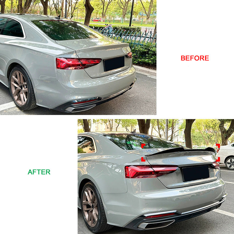 Denne bagspoiler er skræddersyet til at passe perfekt til din Audi A5, hvilket sikrer en problemfri installation og et professionelt udseende.
