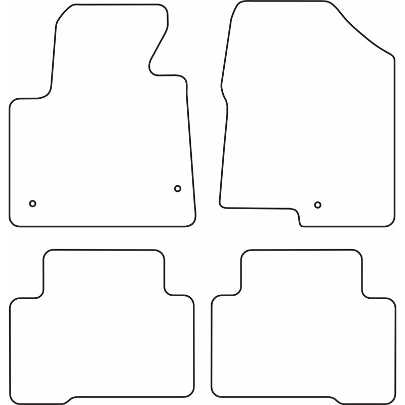 - Optimales Design: Hergestellt aus hochwertigem schwarzem Velours und ausgestattet mit Standardbefestigungspunkten, lassen sich die Matten einfach wie die Original-Fußmatten im Auto befestigen. Die granulierte Antirutschschicht auf der Unterseite sorgt dafür, dass die Matten an ihrem Platz bleiben.