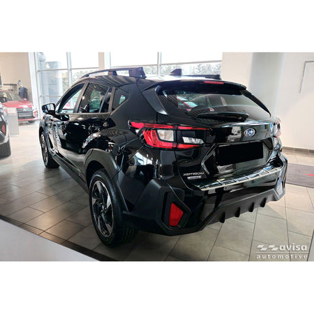 Forøg holdbarheden og det æstetiske udtryk på din Subaru Crosstrek III 2023 med Avisa Bagkofangerbeskytter i rustfrit stål. Denne beskyttelse er designet til at modstå slid og skader, der kan opstå ved lastning og losning af bagagerum.