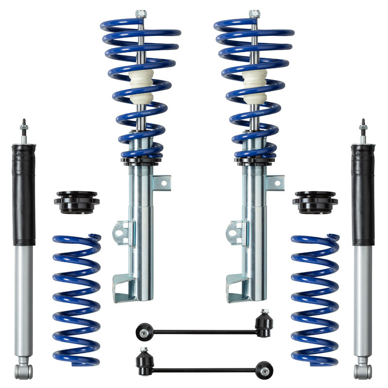 Bonrath, Gewindefahrwerke passend für Mercedes C-Klasse W203/W209 Limousine/Kombi/Coupe/CLK 2000-2011 35-65mm/15-35mm, Stahl, Aluminium, Blau
