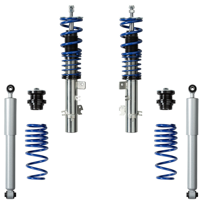 Bonrath, Gewindefahrwerke passend für Peugeot 207 HB/CC/SW 2006-2014 - Federbeindiameter 51mm & 208 2012-2019 & 2008 2013-2019 & Citroën C3 II 2009-2016 & DS3 II 2009-2015, Stahl, Aluminium, Blau