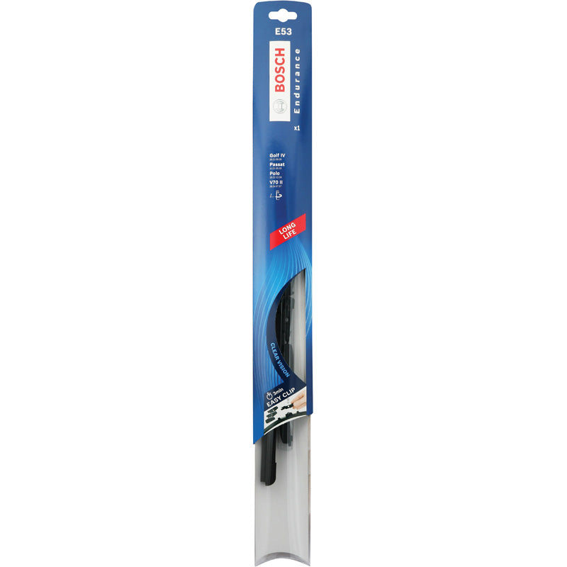 Eine klare Sicht auf der Straße ist entscheidend für Ihre Sicherheit. Die Bosch Scheibenwischerblätter sorgen dafür, dass Sie jederzeit sicher fahren können. Das Bosch 'Flat-Blade' Scheibenwischerblatt Endurance hat eine Länge von 530 mm und wird einzeln verkauft.