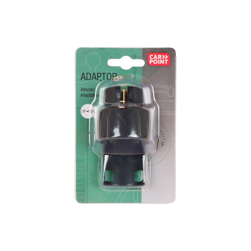Der Carpoint Adapterstecker verbindet problemlos einen Fahrradträger, Anhänger oder Trailer mit einem 7-poligen Stecker mit der Multicon Steckdose Ihres Autos oder Wohnmobils. Dank des stabilen Kunststoffgehäuses und des Bajonettverschlusses ist dieser Adapter sowohl langlebig als auch sicher in der Anwendung.