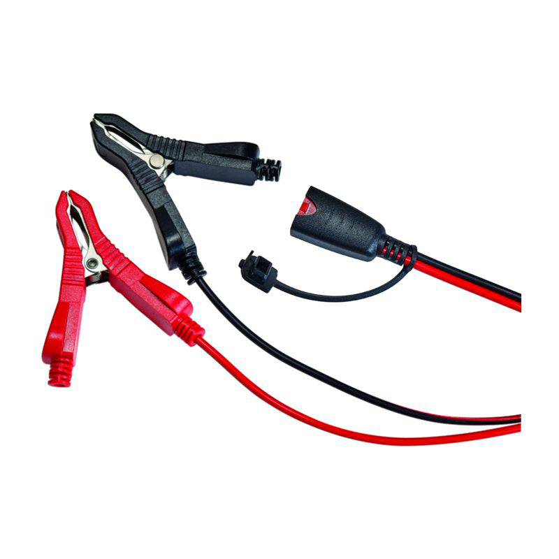 Two different colour coded cables (with battery clamps or eye connector) and quick connector