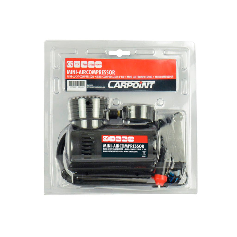 Der Carpoint Mini-Luftkompressor ist die ideale Lösung für alle, die unterwegs schnell und unkompliziert Luft aufpumpen möchten. Mit einer beeindruckenden Leistung von 17 bar eignet sich dieser Kompressor perfekt für Autos, Fahrräder, Luftmatratzen, Fußbälle und Boote. Einfach an den Zigarettenanzünder anschließen und schon kann es losgehen. Der Kompressor funktioniert mit 12 V und ist somit äußerst praktisch für den Einsatz im Fahrzeug.