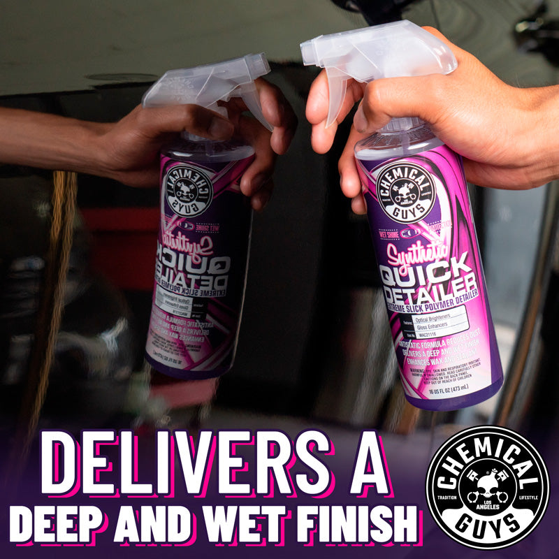 - Among our quick detailers, Synthetic Quick Detailer is a slick polymer formula that extends the life of existing waxes and sealants.