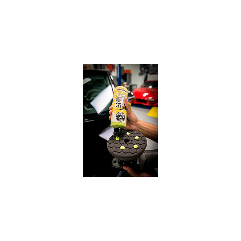 The Black Hex-Logic Quantum Finishing Pad is ideal for smoothly spreading final sealants and wax coatings evenly on freshly polished paint finishes, ensuring a flawless coat that protects against the elements and enhances shine.