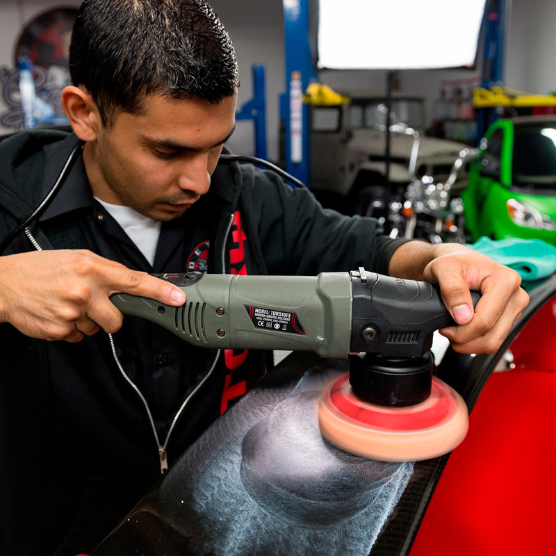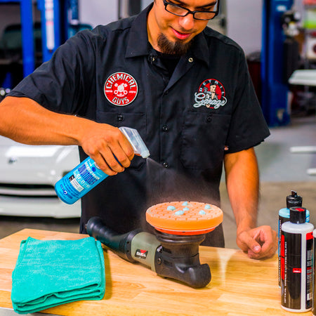 The Orange Quantum Pad is a medium-cutting pad that removes light to moderate defects like swirls, scratches, oxidation, and water spots to restore gloss, depth, and reflection to painted surfaces.