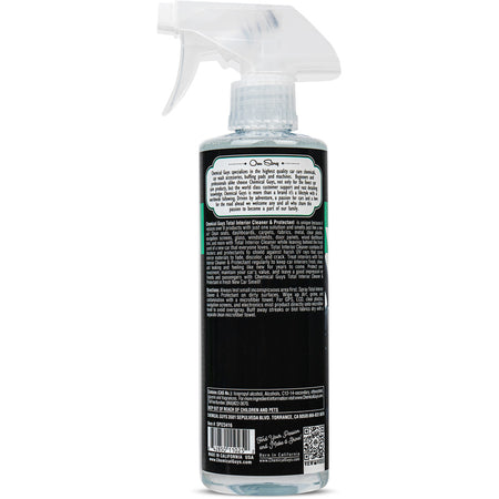 Chemical Guys Total Interior Cleaner & Protectant is unique because it replaces over 8 products with just one solution and smells just like a new car! Clean seats, dashboards, carpets, fabrics, metal, clear plastic, navigation screens, glass, windshields, door panels, wood dashboard trim, and more with Total interior Cleaner while leaving behind the fresh scent of a new car that everyone loves. Total Interior Cleaner contains UV blockers and protectants to shield against harsh UV rays that cause interior materials to fade, discolor and crack. Threat interiors with Total Interior Cleaner & protectant regularly to keep car interiors fresh, clean and looking and feeling like new for years to come. Protect your investment, maintain your car’s value, and leave a good impression on friends and passengers with Chemical Guys Total Interior Cleaner & Protectant in fresh new Car Smell!