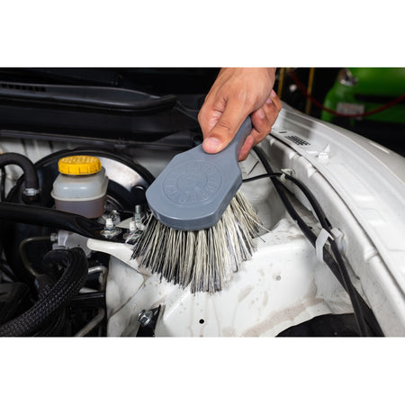The Wheel Works Medium Duty Wheel & Body Brush is the gentle, flagged-tip brush thats strong enough to eliminate dirt and grime yet soft enough for sensitive engine parts and wheel finishes. Perfect for cleaning engine bays, undercarriages, wheels, and more.