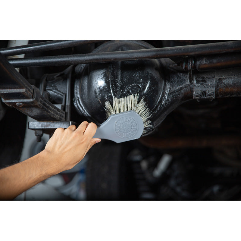 - Among our wheel brushes and tools, the Wheel Works Brush is the best medium-duty scrubbing brush for cleaning engine bays, undercarriages, and wheels