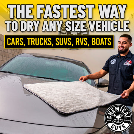This shaggy towel is incredibly soft and super absorbent. With its generous one-inch thickness and 36x25'' size, it easily dries your entire vehicle in just a few smooth passes: no more water spots or annoying streaks.