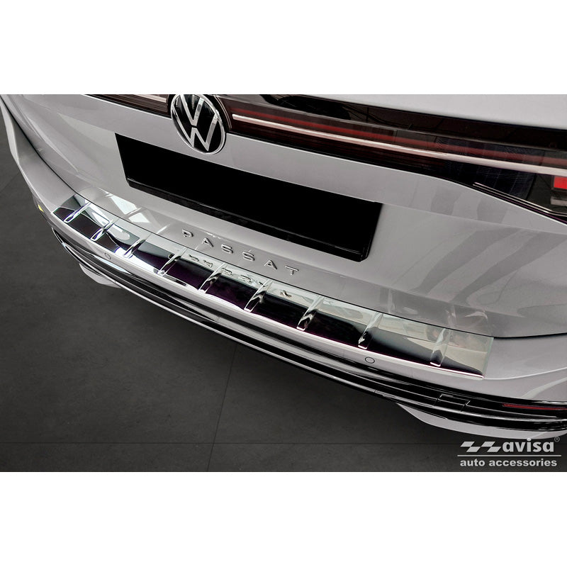 Avisa, Chrom Edelstahl Heckstoßstangenschutz passend für Volkswagen Passat Variant (CJ5) 2023- Ribs, Chrom, Silber
