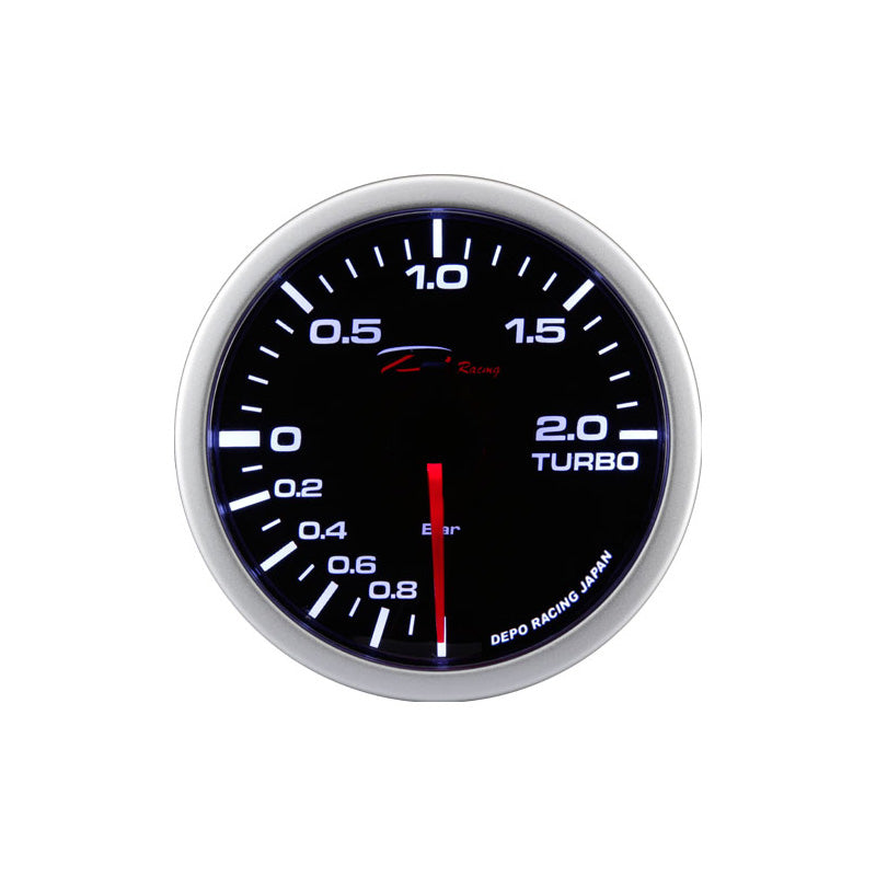 Depo Racing, WA-Series Instrument - Turbodrück +2,0>1 bar - 52mm, Aluminium, Kunststoff, Rauchgrau, Schwarz