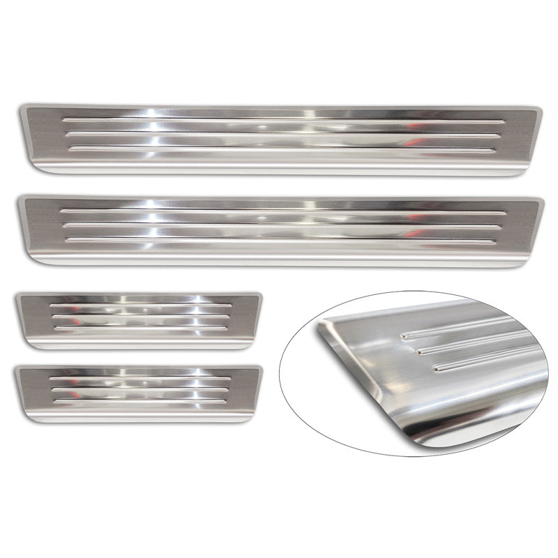 Die Edelstahlleisten verhindern Kratzer und Beschädigungen, die durch den täglichen Gebrauch entstehen können, und bieten zusätzlichen Schutz gegen Witterungseinflüsse. Mit ihrem modernen Design fügen sie sich harmonisch in das Gesamtbild Ihres Fahrzeugs ein.