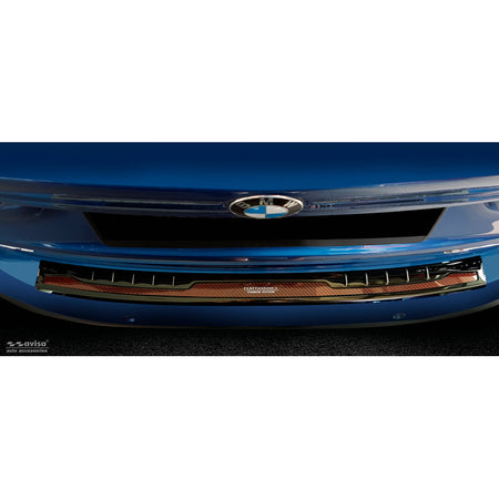Avisa, Edelstahl Heckstoßstangenschutz Deluxe passend für BMW X1 F48 2015-2022 Performance Spiegelschwarz/Rot-Schwarz Karbon, Carbon, Edelstahl, Carbon, Schwarz