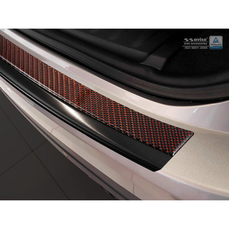 Avisa, Edelstahl Heckstoßstangenschutz Deluxe passend für Jaguar F-Pace 2016-2020 & FL 2020- Schwarz/Rot-Schwarz Karbon, Carbon, Edelstahl, Carbon, Rot, Schwarz