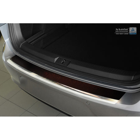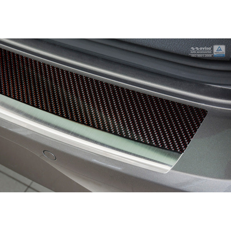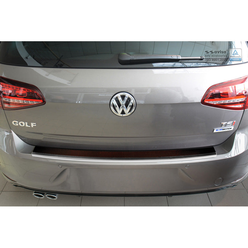 Avisa, Edelstahl Heckstoßstangenschutz Deluxe passend für Volkswagen Golf VII HB 3/5-türer 2012-2019 Chrom/Rot-Schwarz Karbon, Carbon, Edelstahl, Chrom, Carbon, Rot