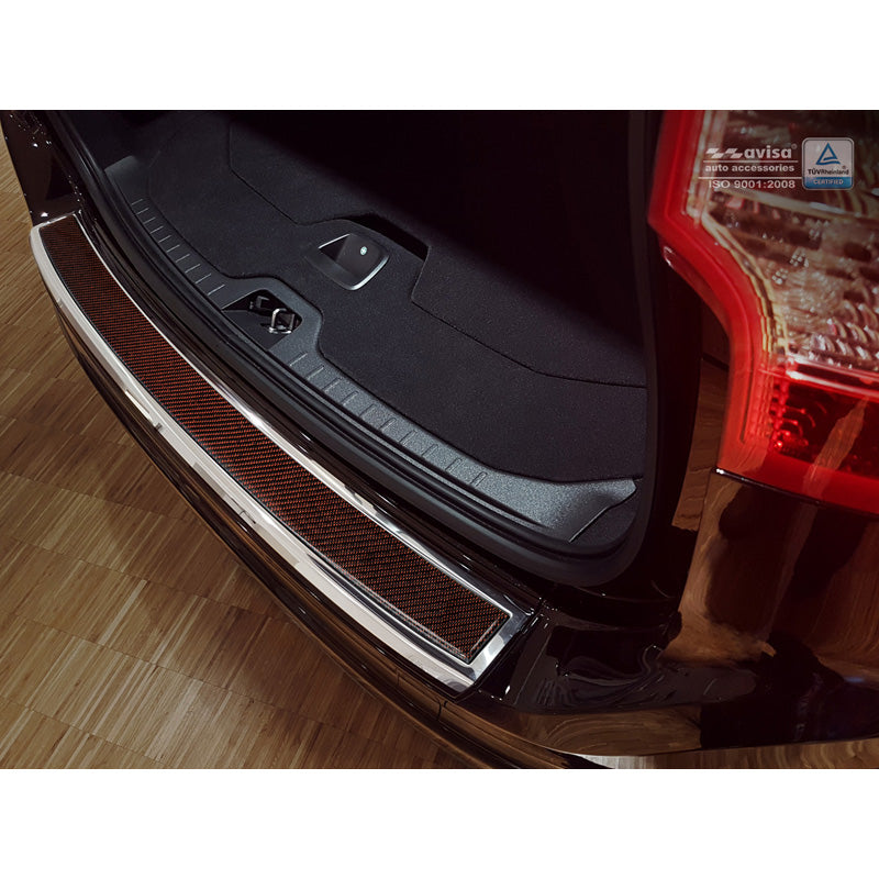 Avisa, Edelstahl Heckstoßstangenschutz Deluxe passend für Volvo XC60 2013-2016 Chrom/Rot-Schwarz Karbon, Carbon, Edelstahl, Chrom, Carbon, Rot