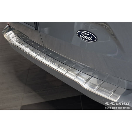 Der Edelstahl Heckstoßstangenschutz für den Ford Transit Custom & Tourneo Custom (V710) 2023- 'Ribs' bietet optimalen Schutz gegen täglichen Verschleiß. Besonders die Oberseite der hinteren Stoßstange ist anfällig für Schäden beim Be- und Entladen des Kofferraums. Schützen Sie den Wert Ihres Fahrzeugs und vermeiden Sie teure Reparaturen.