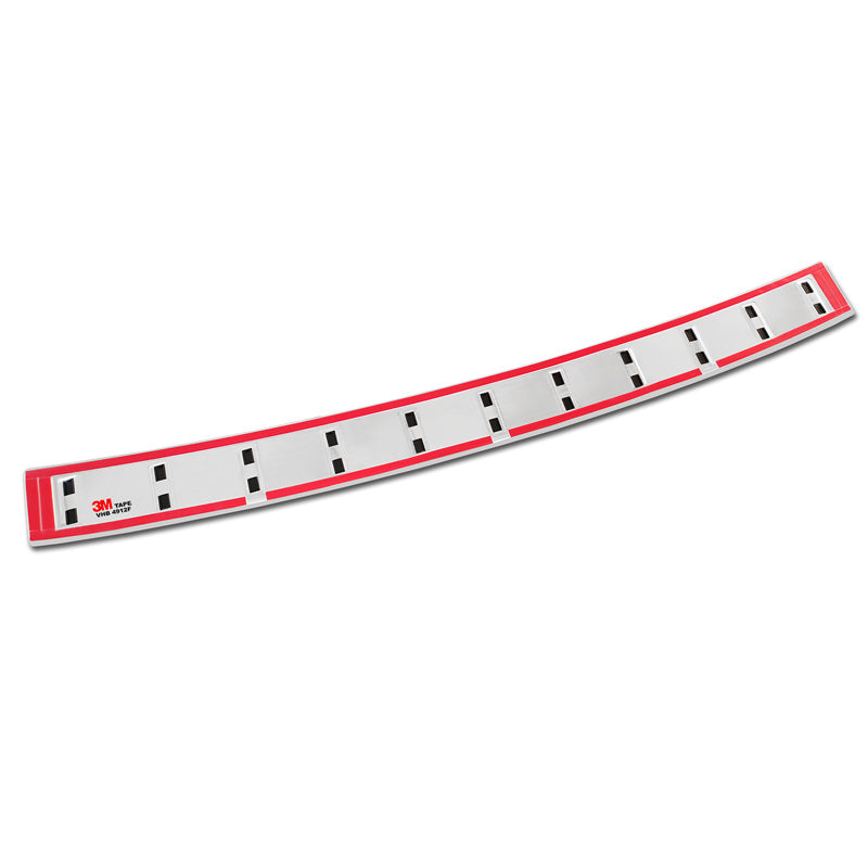 Die Montage des Ladekantenschutzes ist sehr einfach. Er wird mit doppelseitigem 3M-Band befestigt, das die Originalfarbe nicht beschädigt. Das Band ist im Lieferumfang enthalten, ebenso wie eine vollständige schematische Montageanleitung. Die Installation dauert ca. 10 Minuten. Bei ausgewähltem Heckstoßstangenschutz zum Schutz der Kunststoffoberflächen des Fahrzeugs enthält das Kit eine Grundierung, um die Haftfähigkeit des Klebebands zu verstärken.