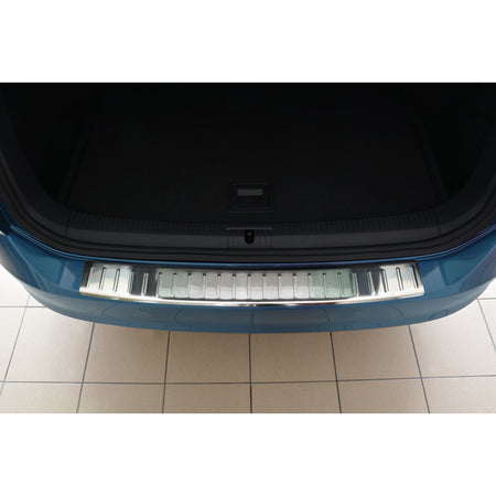 Der Edelstahl Heckstoßstangenschutz für Volkswagen Golf VII Variant/Alltrack 2012-2017 'Ribs' bietet optimalen Schutz gegen täglichen Verschleiß an der Oberseite der hinteren Stoßstange. Diese Stelle ist besonders anfällig für Schäden beim Be- und Entladen des Kofferraums, was zu hohen Reparaturkosten und einem Wertverlust Ihres Fahrzeugs führen kann.