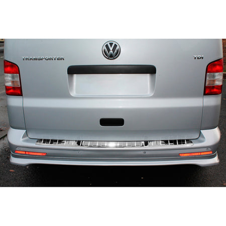 Der Edelstahl Heckstoßstangenschutz ist die ideale Lösung, um die hintere Stoßstange Ihres VW Transporter T5 (2003-2015) oder T6 (2015- / FL 2019-) mit Hecktüren vor alltäglichen Abnutzungserscheinungen zu bewahren. Dieser Bereich des Fahrzeugs ist besonders anfällig für Schäden beim Be- und Entladen, was zu hohen Reparaturkosten und einem Wertverlust Ihres Fahrzeugs führen kann.