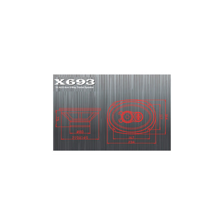 The Excalibur X693 is a 3-way triaxial car speaker with a size of 6x9 inch (16.4 x 23.4 cm). This speaker set delivers 100W RMS and 500W maximum power. Designed for clear sound reproduction with deep bass and crisp highs.