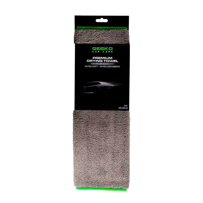 Spülen oder waschen Sie das Fahrzeug mit Autoshampoo und spülen Sie es dann mit klarem Wasser ab. Verwenden Sie das Gecko Premium Trockentuch als Trockentuch, indem Sie die Oberfläche sanft abtupfen, um ein streifenfreies Ergebnis zu erzielen. Anschließend tragen Sie Detailing Spray auf oder verteilen gleichmäßig Wachs und polieren es mit dem Gecko Premium Trockentuch, das dank seiner ultraweichen Fasern optimale Ergebnisse erzielt. Um das Handtuch in Topform zu halten, waschen Sie es regelmäßig mit einem milden Waschmittel und ohne Weichspüler.