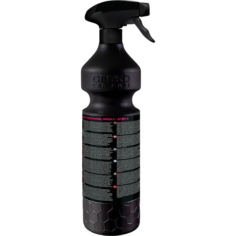 Gecko Pro Panel Spray Step 4 is an indispensable cleaner for the final stage before applying a paint sealant. This advanced panel wipe effortlessly removes residues of polishing agents, oils, dust and other contaminants that remain after polishing. The result: a completely clean and neutral surface that is ready for wax, sealant or ceramic coating.