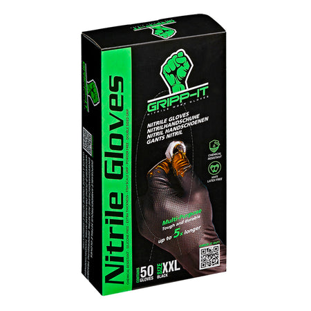 Gripp-It, Nitrilhandschuhe - Maß XXL - Schwarz - Spenderkarton mit 50 Stück, Latex