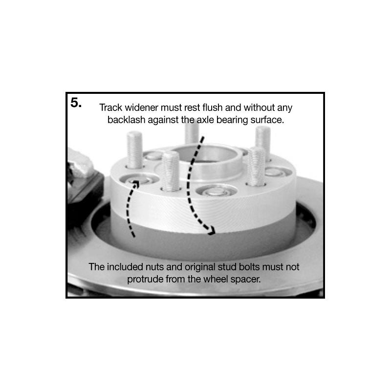 Die Spurverbreiterung wird mit den mitgelieferten Befestigungsmuttern an der Achsanlagefläche befestigt. Die Befestigung der Räder erfolgt mit den vorhandenen Radmuttern der Serien- oder Sonderräder. Bitte beachten Sie, dass die Verwendung von Stahlfelgen in Verbindung mit DRM-Systemen generell nicht möglich ist.