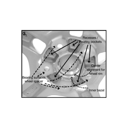Die Spurverbreiterung wird mit den mitgelieferten Befestigungsmuttern an der Achsanlagefläche montiert. Die Räder werden mit den vorhandenen Radmuttern der Serien- oder Sonderräder befestigt. Bitte beachten Sie, dass die Verwendung von Stahlfelgen in Verbindung mit DRM-Systemen nicht möglich ist.