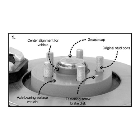 Bitte beachten Sie, dass die Montage des DRS-Systems den Austausch der serienmäßigen Rändelbolzen gegen die längeren H&R-Rändelbolzen erfordert, die im Lieferumfang enthalten sind. Die Befestigung der Räder erfolgt mit den vorhandenen Radmuttern der Serien- oder Sonderräder. Alle notwendigen Teile zur Befestigung der Spurverbreiterung sind im Lieferumfang enthalten.