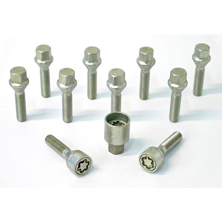 H&R, Radschrauben Satz Kegelbund M12x1.50 - Länge 28mm - 10 Stück - inkl. Felgenschloss, Stahl, Silber