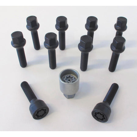 - Lieferumfang: 10 Stück (8 Radschrauben + 2 Felgenschloss-Schrauben) + Adapter