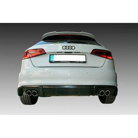 Motordrome, Heckschürzenansatz (Diffuser) passend für Audi A3 8V Sportback 2012-2016 (Linker+Rechter Auspuffausparung) (ABS), Schwarz