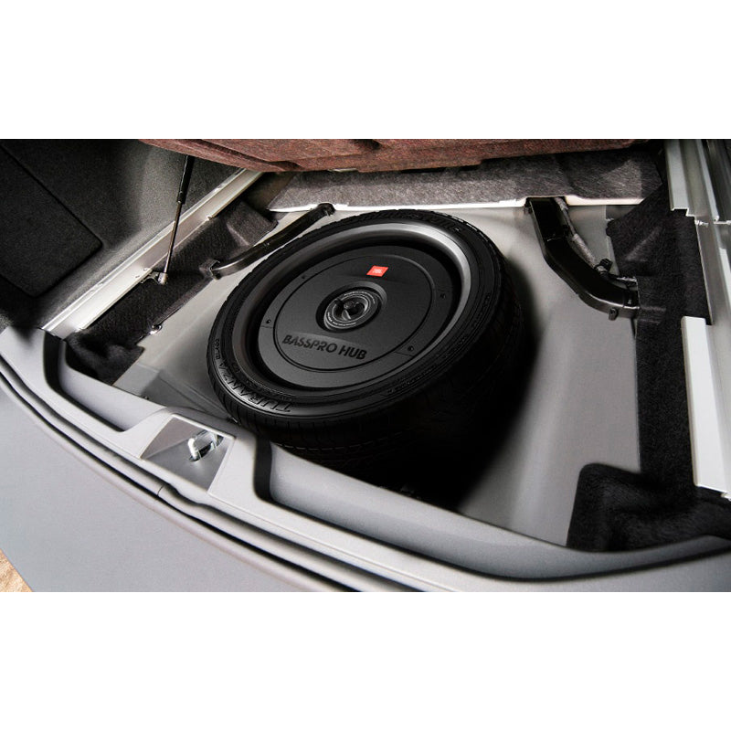 Der JBL BassPro Hub ist der ideale Subwoofer für alle, die kraftvollen Bass lieben, ohne dabei den Platz im Fahrzeug zu opfern. Dieses innovative System passt perfekt in die Mitte Ihres Reserverades und sorgt für eine einfache Installation sowie für einen unauffälligen Klanggenuss. Der integrierte Class D Verstärker liefert 200W RMS und ist speziell auf das BassPro Hub System abgestimmt. Mit einem federleichten 11'' (279 mm) Fiberglas-Woofer mit Gummisicke erleben Sie den charakteristischen JBL-Bass, der begeistert. Dank Übertemperatur- und Überstromschutz können Sie sich auf Zuverlässigkeit auch bei maximaler Lautstärke verlassen. Die mitgelieferte Fernbedienung ermöglicht die Anpassung von Übergangsfrequenz, Gain, Phase und einen Bass-Boost von 12dB, wenn Sie in der Stimmung sind. Ob beim Cruisen oder im Wettkampf, der JBL BassPro Hub lässt die Konkurrenz hinter sich.