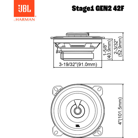 JBL, Stage 1 Gen2 42F, 4'' Coaxial Bilhøjttalere, 320W Peak, Uden Grille