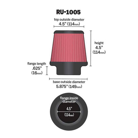K&N, Luftfilter Universal Konisch 114mm Flansch, 149mm Untendurchmesser, 114mm Obendurchmesser, 114mm Höhe (RU-1005), Rot