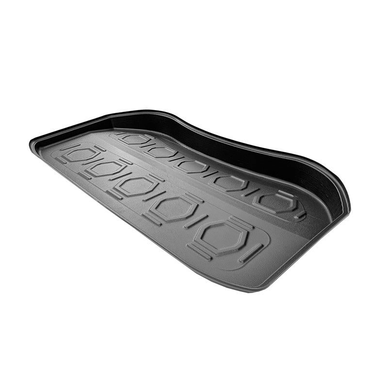 Die Kofferraumwanne aus hochwertigem Kunststoff eignet sich hervorragend für den Transport von nassen und schmutzigen Gegenständen. Sie sorgt dafür, dass Ihr Frunk sauber bleibt, selbst wenn Sie beispielsweise Ihren Hund nach einem Waldspaziergang mitnehmen. Die Wanne ist so konzipiert, dass Schmutz und Feuchtigkeit im Inneren bleiben, wodurch die ursprüngliche Kofferraumverkleidung geschützt wird. Dank des rutschfesten Profils verrutschen auch schwere Gegenstände wie Einkaufskörbe und Wasserkästen nicht.