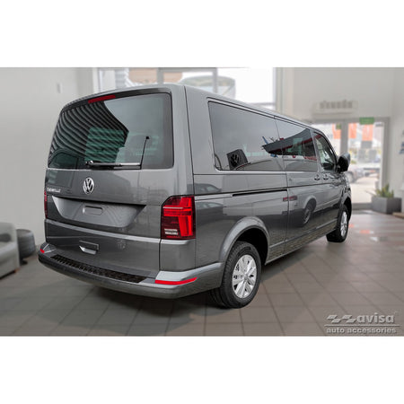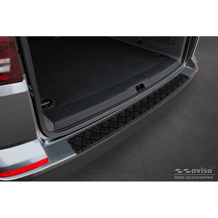 Avisa, matt-Schwarz Aluminium Heckstoßstangenschutz passend für Volkswagen Transporter T6 2015- & FL 2019- (mit Heckklappe) Riffled plate, Mattschwarz