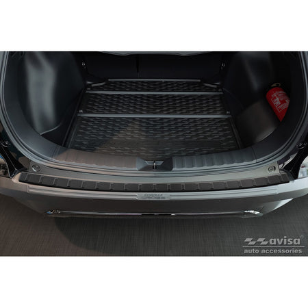 Der Matt-Schwarz Edelstahl Heckstoßstangenschutz für den Toyota Corolla Cross 2022- 'Ribs' bietet optimalen Schutz gegen alltäglichen Verschleiß. Die Oberseite der hinteren Stoßstange ist besonders anfällig für Beschädigungen beim Be- und Entladen des Kofferraums. Ein Ladekantenschutz bewahrt nicht nur die Ästhetik Ihres Fahrzeugs, sondern trägt auch dazu bei, den Wert Ihres Autos zu erhalten.