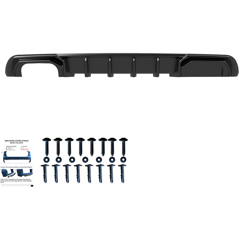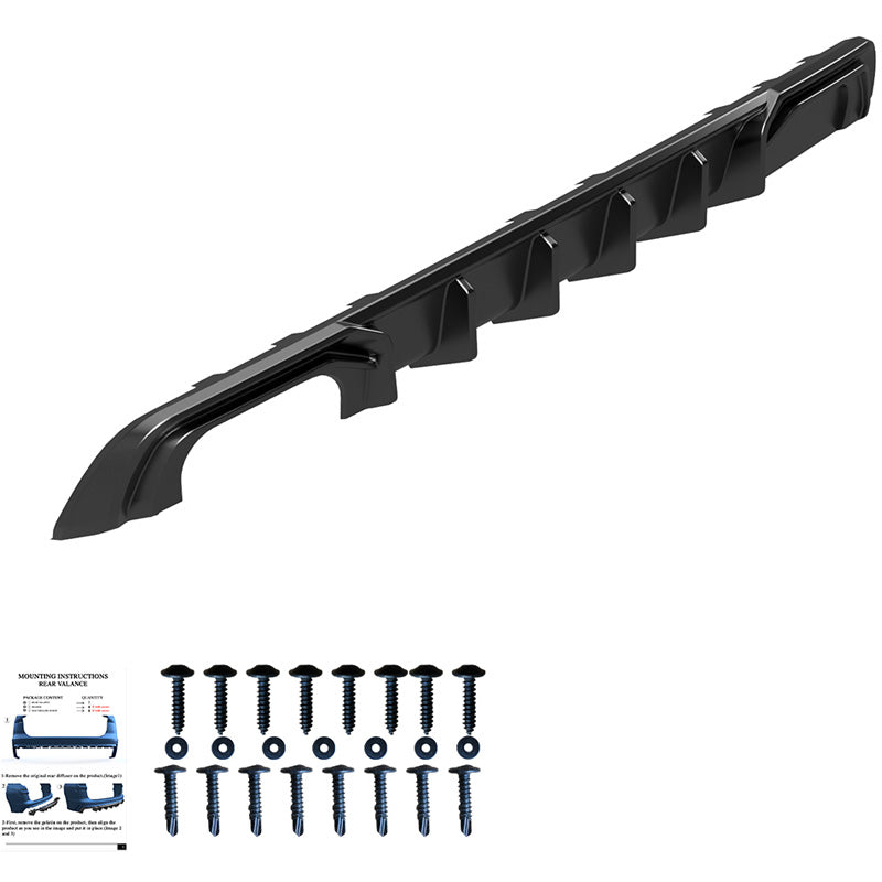 Add a touch of sophistication and style to your rear bumper with our rear diffuser. This sporty upgrade not only improves the aesthetics, but also ensures that your vehicle stands out on the road and makes a strong statement. The rear valance comes in a glossy black finish that you can easily paint if you prefer.